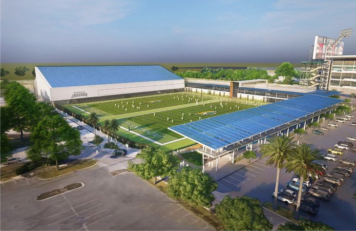 The NFL’s Jacksonville Jaguars recently completed the construction of the brand new Miller Electric Center, the team’s state-of-the-art practice facility. The two story facility includes two outdoor fields, a full size indoor practice field, fan amenity areas, offices and meeting rooms.